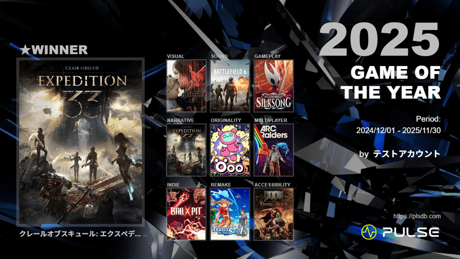 - プロジェクト名: 日本独自の評価基盤を作る - ゲーム記録・管理プラットフォーム「PULSE」
