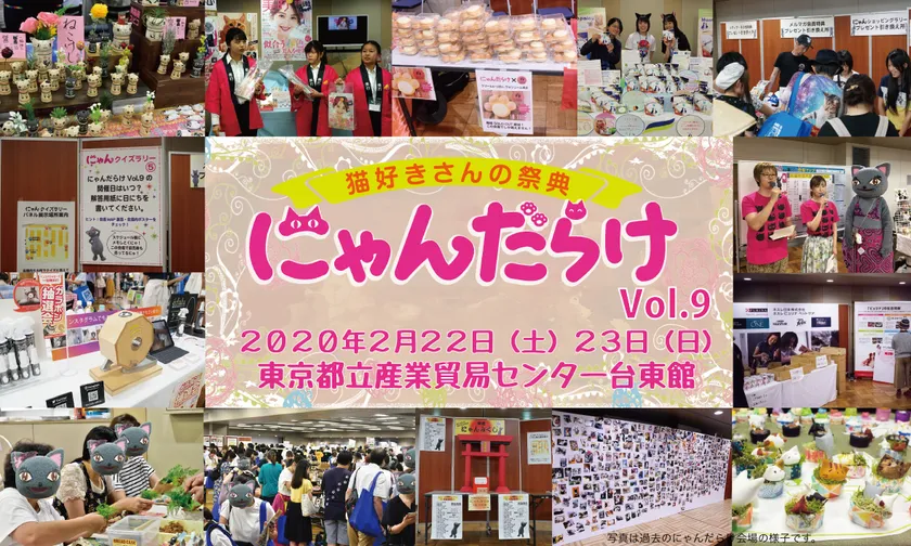 にゃんだらけ実行委員会は、猫好きさんの祭典「にゃんだらけVol.9」を、2020年2月22日(土)~23日(日)に浅草の産業貿易センター台東館で開催することをお知らせします。9回目を迎えるVol.9のテーマは、「ハッピーにゃんデー 猫の日~猫について学ぼう」。この日は「猫の日」当日であり、3連休の前半2日間ということもあり、会場中がハッピーにゃんスマイルであふれかえる、とっておきの2日間です。