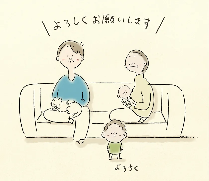 家族と過ごす何気ない日常の、ちょっとした出来事をマンガに描いています。