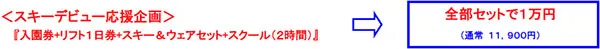 ※レッスン代、教材代(スキー板、スキーブーツ、ヘルメット)を含む
