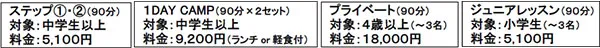 ※プライベートレッスンは4名を超える場合は、追加1名毎に90分につき+6,000円