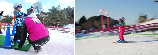 スキースクールでは、今年から初めての方だけが参加する「初めてクラス」を新設。インストラクターが丁寧な指導を行い、お子様から大人の方まで、幅広い世代にスキーの楽しさを体感していただけます。また、3歳から6歳の未就学児を対象とした「スノイルキッズスクール」では、「特許フリクションマット」を使用したレッスンプログラム「マジックレッスン」により、雪上のスキー滑走に必要な基本動作を楽しく自然に学ぶことができます。さらに、スノーボードスクールでは、スノーボードメーカーのBURTON(バートン)が開発した、ビギナー向けの専用ボードで行う少人数制の特別プログラムで、安全に楽しく「90分でターン」を体感できます。加えて、直行バスを運行することで、お車をお持ちでない方や、山道の運転が不慣れな方等、若年層からファミリー層まで幅広いお客様にご来園いただけるようにサービスを提供して参ります。