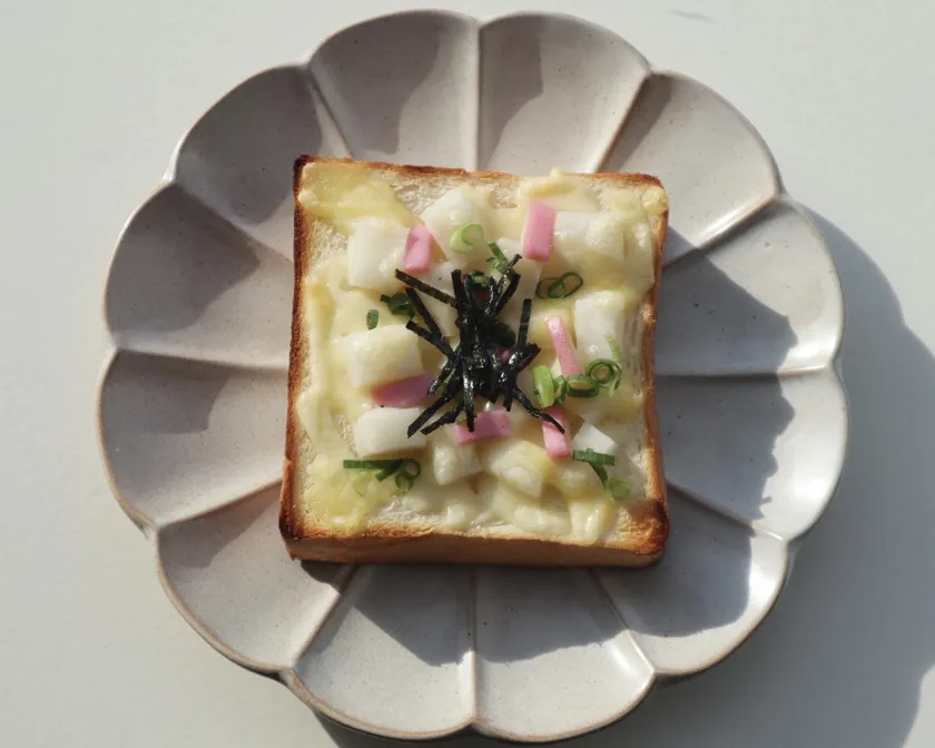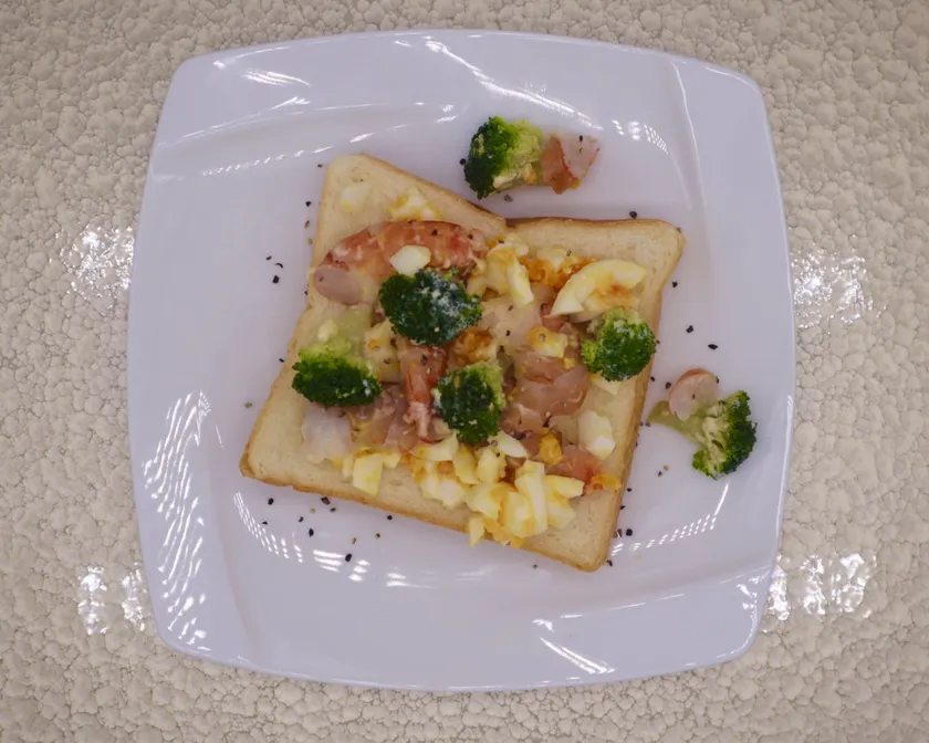 4. 混ぜ合わせたら、生食パンにたっぷりのせて完成。