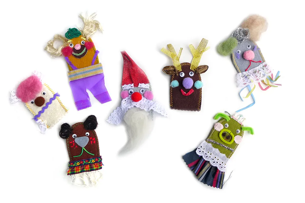 たちもとみちこ氏と一緒に、レースや毛糸でゆび人形を作成するワークショップを開催します。