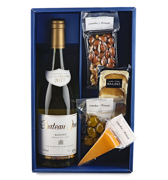 ・「燻製バルセット(マスカルポーネいぶりがっこetc.)」×「シャトージュン 甲州 白ワイン」 5,500円(税込・送料無料)
