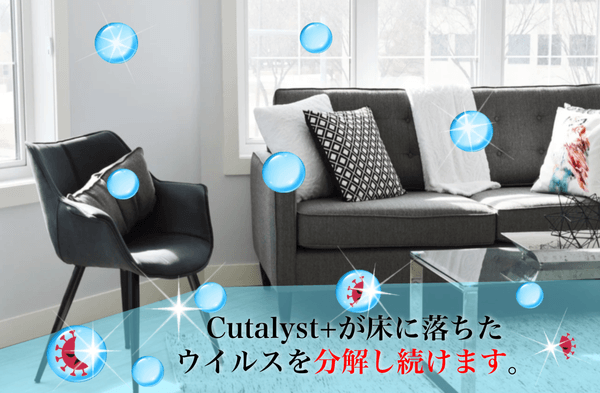 そうすると、床にコーティングしたCutalyst+(カタリスト )光触媒抗菌・除菌コーティングが「ウイルス」や「菌」を分解=除菌及び不活性化させてくれるのだ。