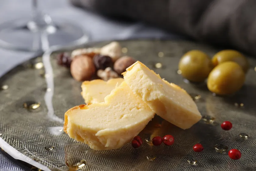 濃厚でコク深いこのチーズケーキには、同じくコクがあって香りも特徴的な樽熟成のシャルドネとのペアリングがおすすめ。ワインとの抜群のマリアージュが楽しめます。また、お好みでジャムやはちみつを添えてスイーツとして楽しむ食べ方も。日々のちょっとした贅沢や、お酒を楽しむパーティーなどに最適なチーズケーキです。