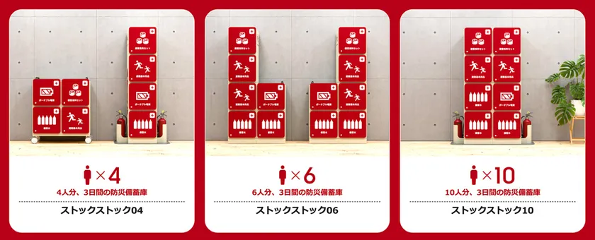 ストックストックは、4人用、6人用、10人用の3タイプをご用意しています。