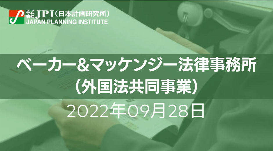 日本計画研究所は、ベーカー&マッケンジー法律事務所(外国法共同事業) 弁護士・ニューヨーク州弁護士 田邊 政裕 氏を招聘して下記の通りセミナーを開催いたします。
