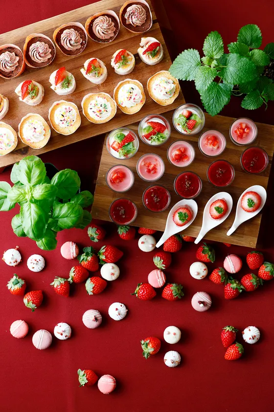 約30種類の苺やハーブを使用したスイーツのブッフェ