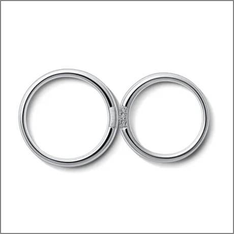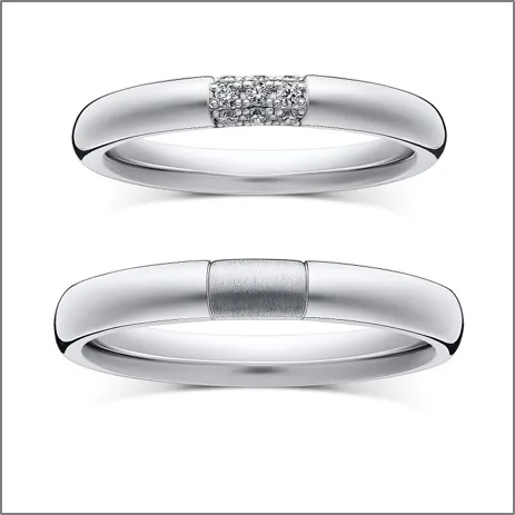 ペアで同位置にヘアライン加工、メレダイヤモンドがセッティングされており、180度どの角度から見てもペア感を感じることができます。