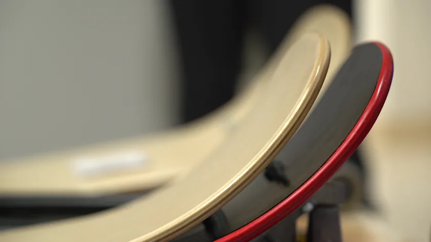 実際のスケートボードでも採用されている【ウィール】【デッキ(板)】【トラック】を使用。【デッキ(板)】は実際にスケートボードのデッキを製造している工場で加工をしており、軽くて強度の高いものとなっています。