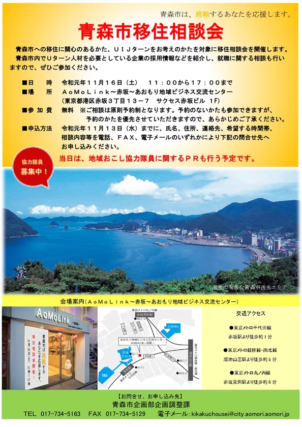 青森市への移住/UIJターンに関心のある方全員が対象 『青森市移住相談会』を東京・赤坂で11月16日(土)開催