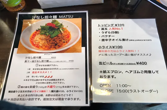 店舗名 :汁なし坦々麺MATSU