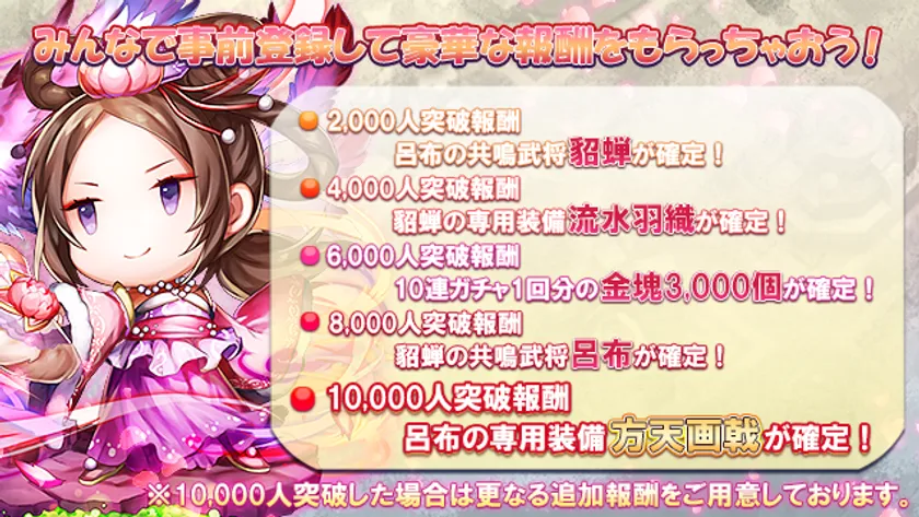 ・2,000人突破で呂布の共鳴武将器「貂蝉」上乗せ確定!