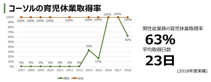 コーソルの育児休業取得率グラフ