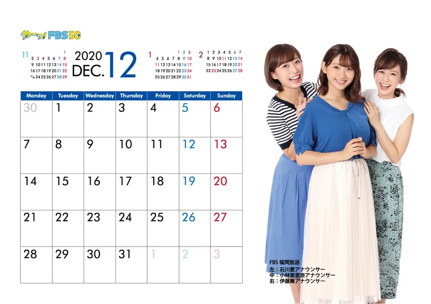 FBS福岡放送 アナウンサーカレンダー2020