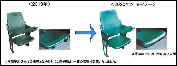 なお、座席改修及び仕様変更後の座席は2020年シーズンのオープン戦(日程未定)からご利用いただけます。オープン戦及び公式戦の発売方法等は、2020年1月末頃阪神タイガース及び阪神甲子園球場公式サイト等でご案内する予定です。
