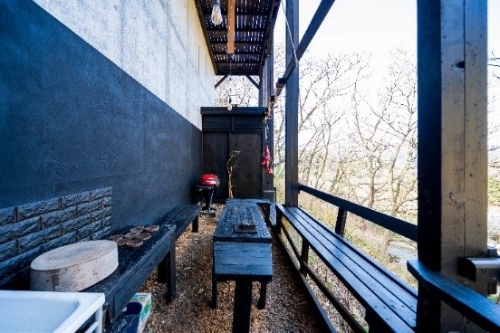 ウッドデッキ、BBQ スペース、薪ストーブで「移住体験」を満喫