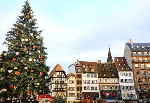フランスのクリスマスといえば「クリスマスの首都」とも呼ばれるストラスブールで行われるクリスマスマーケットが有名。1570年頃から400年以上開催され続けており、毎年200万人が訪れます。このクリスマスマーケットは市内に11カ所の会場があり、巨大なクリスマスツリーを始め、イルミネーションやクリスマスのデコレーションなど、街全体で華やかな雰囲気を楽しめます。