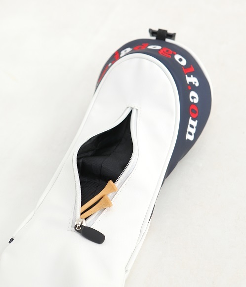 (6)ヘッドカバーは内側に小物(ティー)など入れられるファスナー付きポケットを搭載。ファスナーを閉めることによってカートからの落下防止に役立つ。