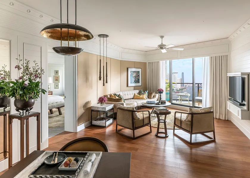 今回は合計9千万米ドル(約98億2千100万円)を投下し、リバーウィング内の全ての客室を改装し、客室の構成を変えることで、スイートタイプの客室数を増やしました。38~63平方メートルの広さを誇る新たな客室のデザインは、世界的に有名なインテリア・デザイナー、ジェフリー・ウィルクス(Jeffrey Wilkes)氏に依頼し、当館の長きにわたる歴史を尊重しつつ、21世紀らしいテクノロジーや利便性も至る所に取り入れて頂きました。川沿いというロケーションからデザインのインスピレーションは派生しており、トロピカルな香りを添えるチーク材のフローリング、豊かな質感のカーテン、ジム・トンプソンの豪華なファブリック、白く塗られた木製の壁面パネルなどが、優雅なリゾートの雰囲気を生み出しています。客室に併設しているバルコニー、床から天井までつながる大きな窓からは、バンコク市民から「王の川」として親しまれている、チャオプラヤ川の優雅な流れをご覧いただけます。