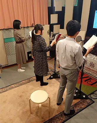 今回私は子供の役を演じたのですが、子供らしい明るい声が自然に出せるよう、小学校一年生の顔の表情や動きなどをたくさん研究して本番に挑みました。収録当日は、アフレコの授業で学んだマイクワークやあいさつなど“声優現場の基本”を実践で活かすことができました。どんな指摘を受けるのだろうと不安でしたが、褒められたときは泣きそうなくらい嬉しかったです!これから控えているラジオ収録も、普段から声優さんのラジオをよく聞いているので、そんな場所に出られると思うと緊張しますが、すごく楽しみにしています!