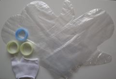 ・手袋は2層構造で内層の極薄フィルムがゴムバンドと肌に密着し密封性を高めています