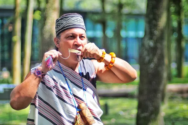 講師は、谷關に暮らすタイヤル族の「鄭保雄(ツンバオション、タイヤル語名:Popaw)」氏です。鄭氏は、タイヤル族の文化・祖先の知恵を次世代に伝えたいという想いから、長年にわたり熱心にタイヤル族文化の推進を続けています。13歳の頃から、罠を使った動物の捕まえ方、口琴の作り方および演奏方法などを、親や家族から習い育ちました。タイヤル族文化に精通しており、その伝承に注力する第一人者としても知られています。