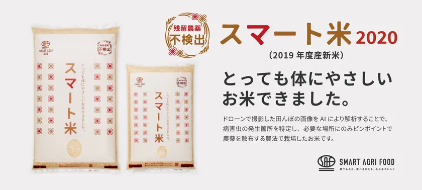 AIやドローンを使い、農薬使用量を抑えたあんしん・安全なお米「スマート米2020」(2019年度産新米)