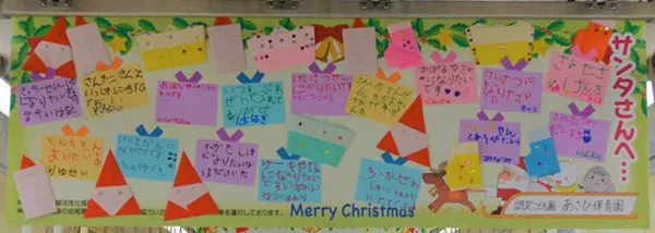 沿線の幼稚園・保育園(所)にご協力いただき、サンタクロースへの願い事やメッセージが書かれたポスターを車内に掲出します。