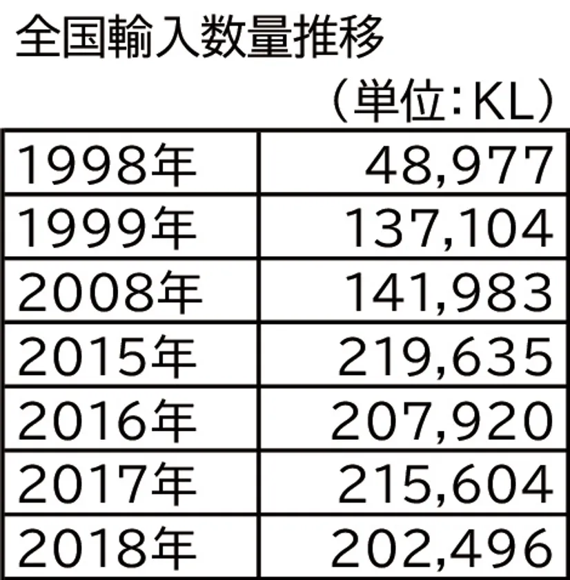 ワインの全国輸入数量推移(東京税関調べ)