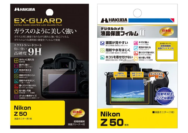 ハクバ写真産業株式会社 (本社:東京都墨田区)は、Nikon Z50専用液晶保護フィルムに、ガラスのように美しく強い「EX-GUARD」タイプと「MarkII」タイプの2製品を発売いたします。