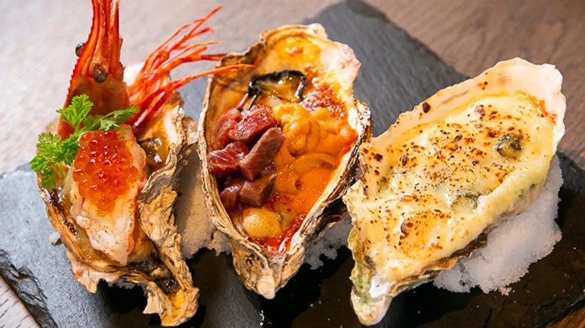 ・生牡蠣、焼牡蠣 1P 300円 / 牡蠣のグリル 雲丹と黒毛和牛 1,000円