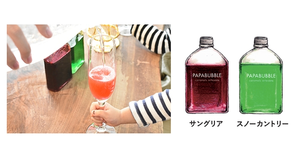 フレーバーは一般的なサングリアをベースに3種類の赤ワイン、4種類のフルーツを組み合わせたパパブブレ風オリジナル「サングリア」とウォッカ、コアントロー、ライムを合わせた日本発祥のカクテル”雪国”をベースにパパブブレアレンジを加えた「スノーカントリー」の2種。