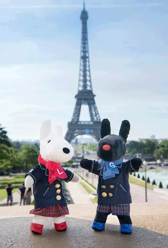 ほわほわの白いボディにつぶらな黒目、赤いマフラーがお似合いのリサ。黒いボディに青いマフラー、赤いお鼻にくりくり瞳のガスパール。リサとガスパールは、うさぎでもない、いぬでもない、キュートなパリの住人。人間の学校に通って友だちはいっぱいだけど、とくべつ仲良しな2人は、遊びもいたずらもいつも一緒です。