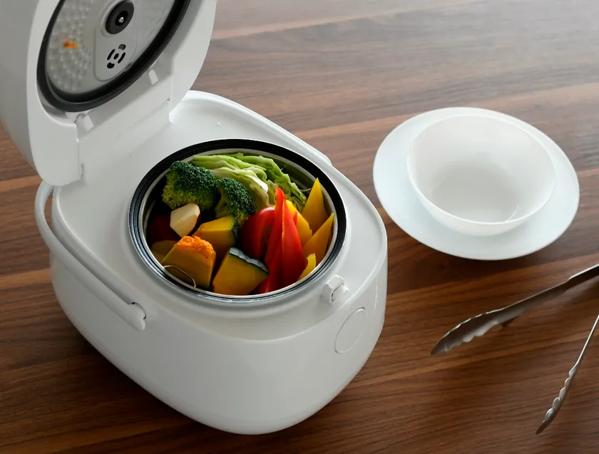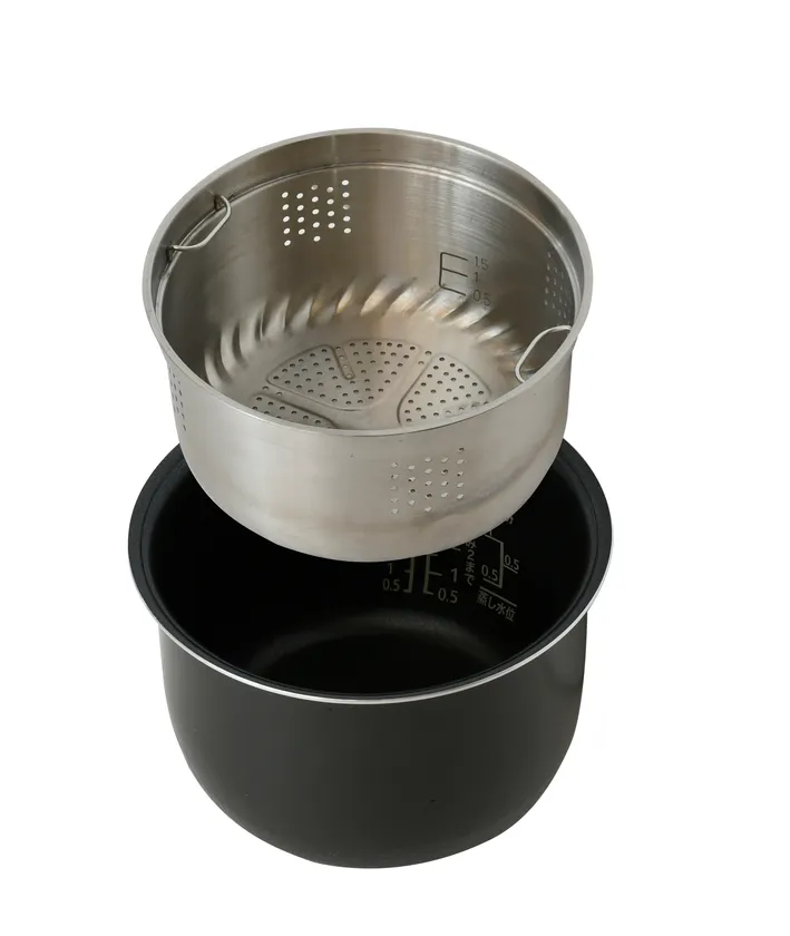 内釜を外すと3合までの通常炊飯が可能です。また、内釜を使用し、魚・肉・野菜などを蒸し料理にして楽しむこともでき、一台で糖質制限料理の幅が広がります。