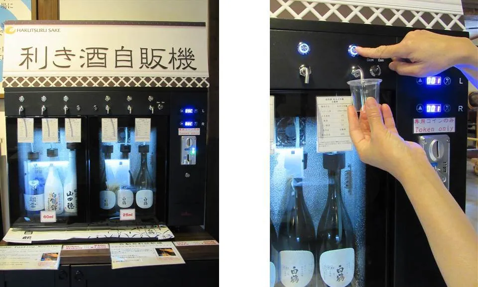 白鶴酒造資料館に限定酒や高級酒の 利き酒ができる「日本酒自販機」登場