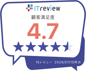 ITreviewでは、6つの項目(機能への満足度・使いやすさ・導入のしやすさ・管理のしやすさ・サポート品質・価格)それぞれにおいて、ユーザーが5点満点で満足度のスコアをつけます。「DIGGLE」は、全ての項目が4.0点以上と、同じカテゴリの製品の中でも高得点を獲得しました。また顧客満足度は5点満点中4.7点を獲得しました。