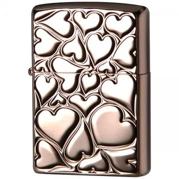 ハートがたっぷりデザインされた、見ているだけでも心が温かくなるようなZippoライター。鏡面仕上げの表面にダイヤカットでハートを彫刻しており、より立体感のあるデザインを表現しています。落ち着いたローズピンクカラーで、女性にも好評です。