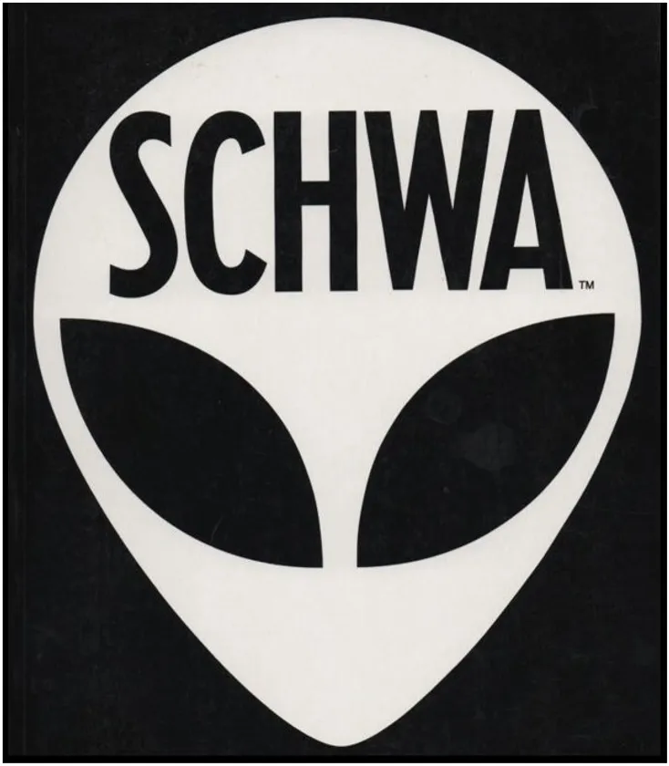 SCHWAブランドは、米国のグラフィックアーティスト、ビル・バーカー氏が1992年に作成した、アンダーグラウンド・コンセプト・アート。シンプルな表現を追求した結果、白黒のスティックボディに卵型の頭のエイリアンが誕生しました。その後アクセサリーやステッカー、そして彼の最初に出版されたアート本、ネバダ州のリノ大学新聞などに採用されるようになり、更にそのアート本とグッズをセットにしたアートキット本「コンプリートシュワキット」を出版したことで大手出版社との取引が始まります。