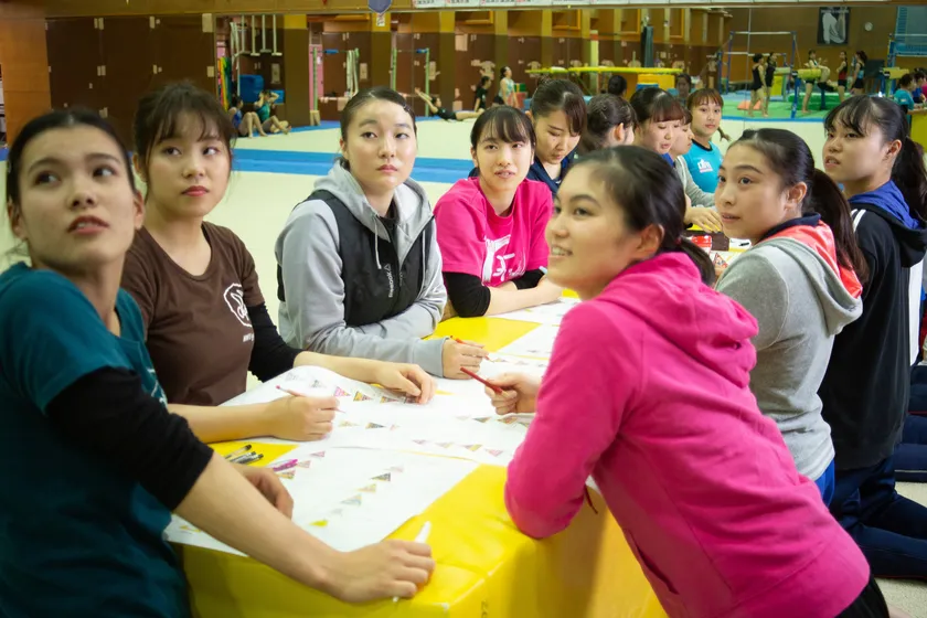 国内トップクラスの選手が多数所属する強豪チームである武庫川女子大学 体操部との出会いは監督である大野氏。「体重管理が必要なアスリートでもお菓子は食べます。同じ食べるならスポーツに役に立つ成分が入っている方がいいですね」の一言から始まりました。所属する選手21名におやつについてアンケートをお願いしたところ、23.8%の選手がほぼ毎日、61.9%の選手が2-3日に1度は食べているとの結果に。「BCBALL」(BCAA配合チョコレート、以下 BCBALL)のリニューアルを検討していた私どもはその結果を踏まえ大野監督に、苦いBCAAをおやつ感覚でおいしく補給できる商品開発のご協力を依頼し快諾をいただきました。