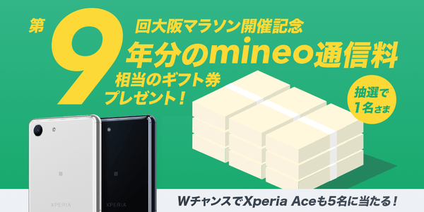 賞品:1名さまに9年分のmineo通信料(約16.3万)分のギフト券