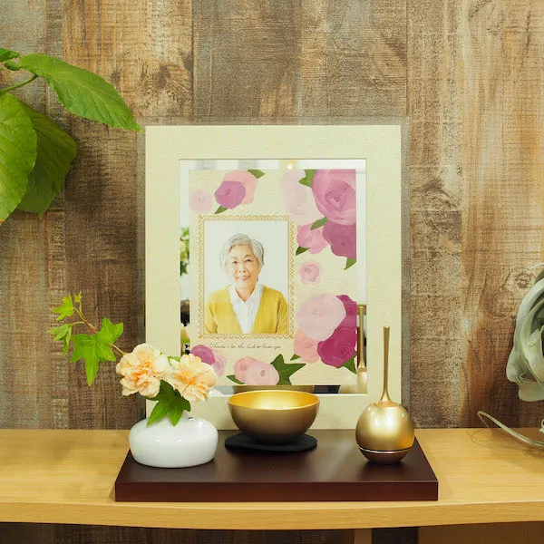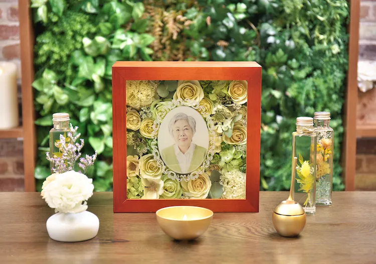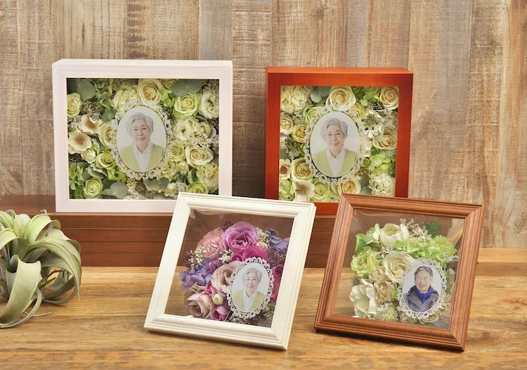 お葬式やお別れの会当日に飾った花を加工してデザインする 新しい遺影額のかたち