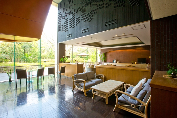 全面ガラス張りの大浴場と、森に囲まれた露天風呂