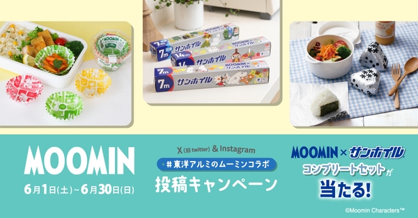 東洋アルミエコープロダクツ株式会社(本社:大阪市)は、6月1日(土)~6月30日(日)の期間で、ムーミン×サンホイル 限定コラボパッケージ発売記念!SNS投稿キャンペーンを開催いたします。X(旧Twitter)もしくはInstagramで対象商品の写真をハッシュタグ「#東洋アルミのムーミンコラボ」を付けて投稿することで応募できます。おべんとうカップやおにぎりホイルなど、これまでのムーミンコラボ商品も投稿の対象になりますので、詳細を確認の上、ぜひご参加ください。