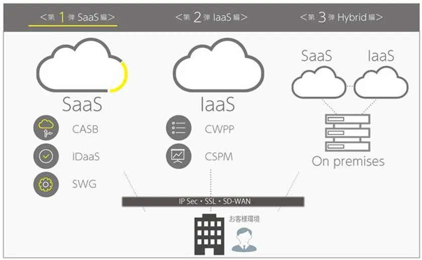 今回は第一弾としてSaaS連携やCASB、SWGのセキュリティ環境を用意していますが、以下の完成形を目指し、第二弾・第三弾の拡張を予定しています。
