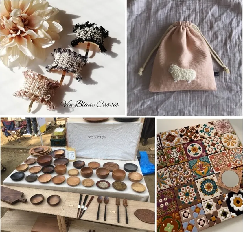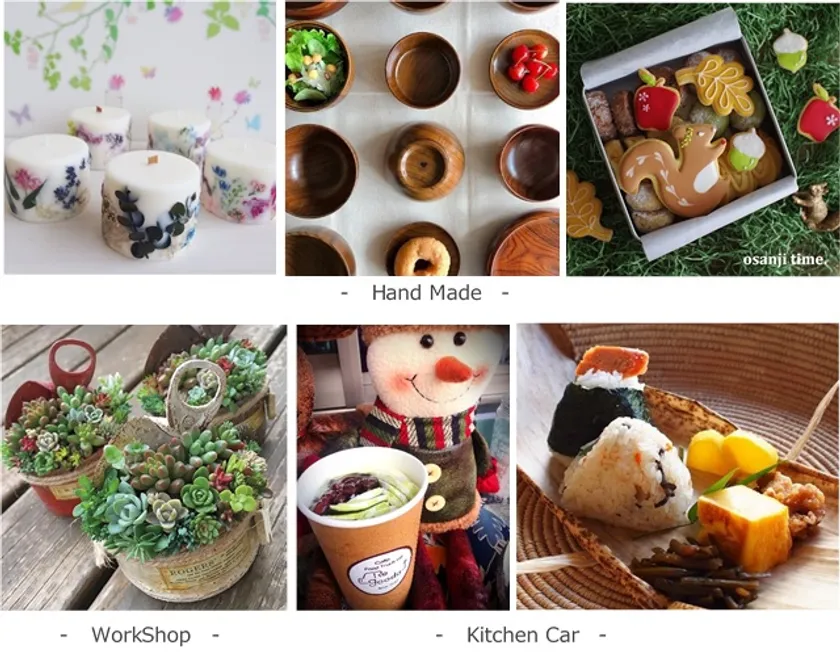 当日のブースでは、神奈川県内で採れた新鮮な野菜や果物、工芸品のほか、約60店の小さなお店が軒を連ね、アクセサリーやファッション、インテリア、雑貨、ステーショナリー等のハンドメイドグッズを販売します。このほか、キッチンカーの出店、美味しい焼き菓子やパン等の手づくりフードブースや、どなたでも気軽に参加できる“ハンドメイド体験教室”も開催し、見る、食べるだけではなく、体験することができるのも縁市の楽しみのひとつです。