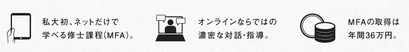 (1)日本初!ネットだけで取得可能な芸術修士(MFA)。100%オンライン学習により、インターネット環境があれば、いつでもどこでも学べます。