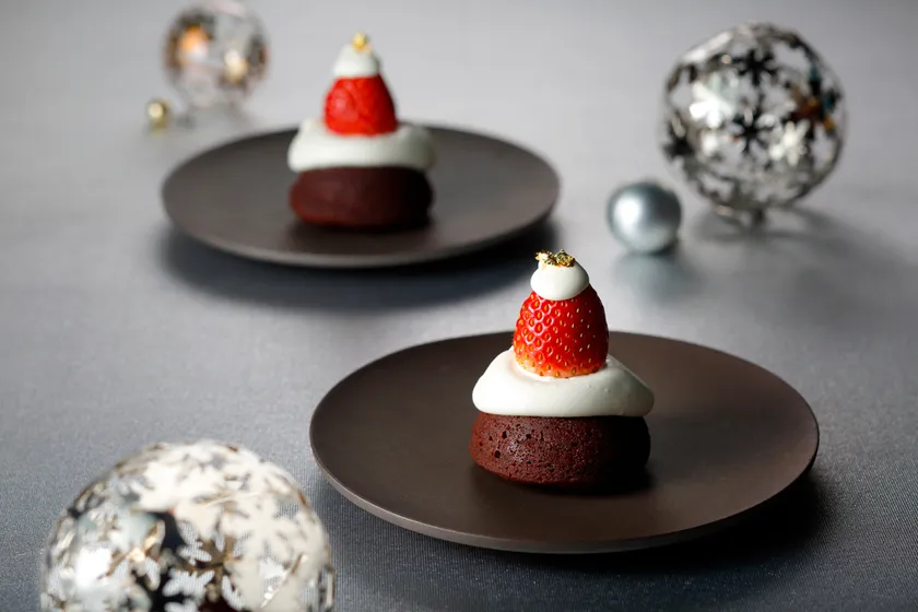 サンタクロースの帽子をイメージした濃厚フォンダンショコラに生クリームと真っ赤なイチゴをトッピング。ショコラには、香り豊かなシングルオリジンのビターチョコレート「エクアドル」を使用。濃厚なチョコレートとフレッシュイチゴのマリアージュをお楽しみください。